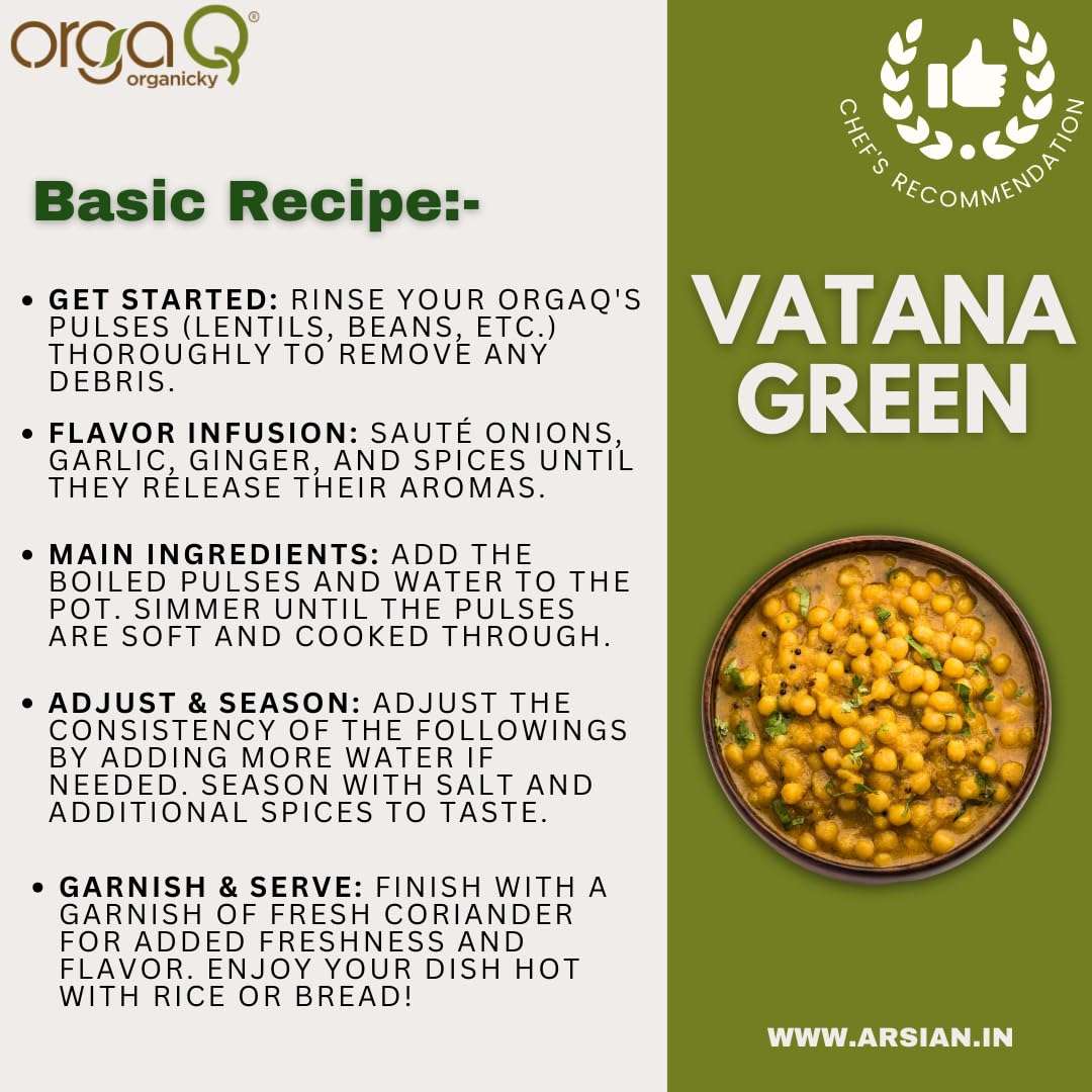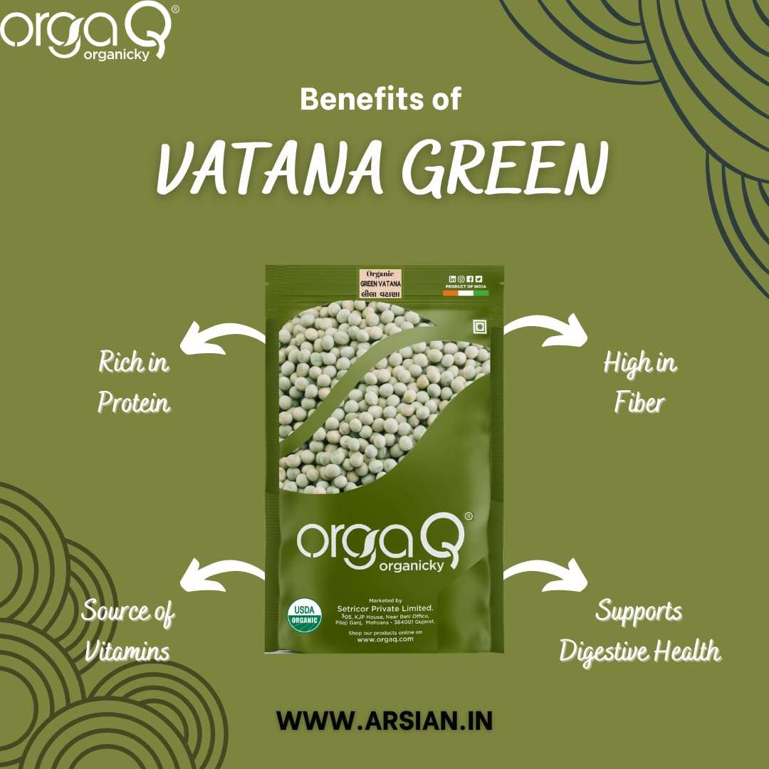 OrgaQ Organicky Organic Dry Green Vatana/Matar Beans/Green Peas - 500 Grams