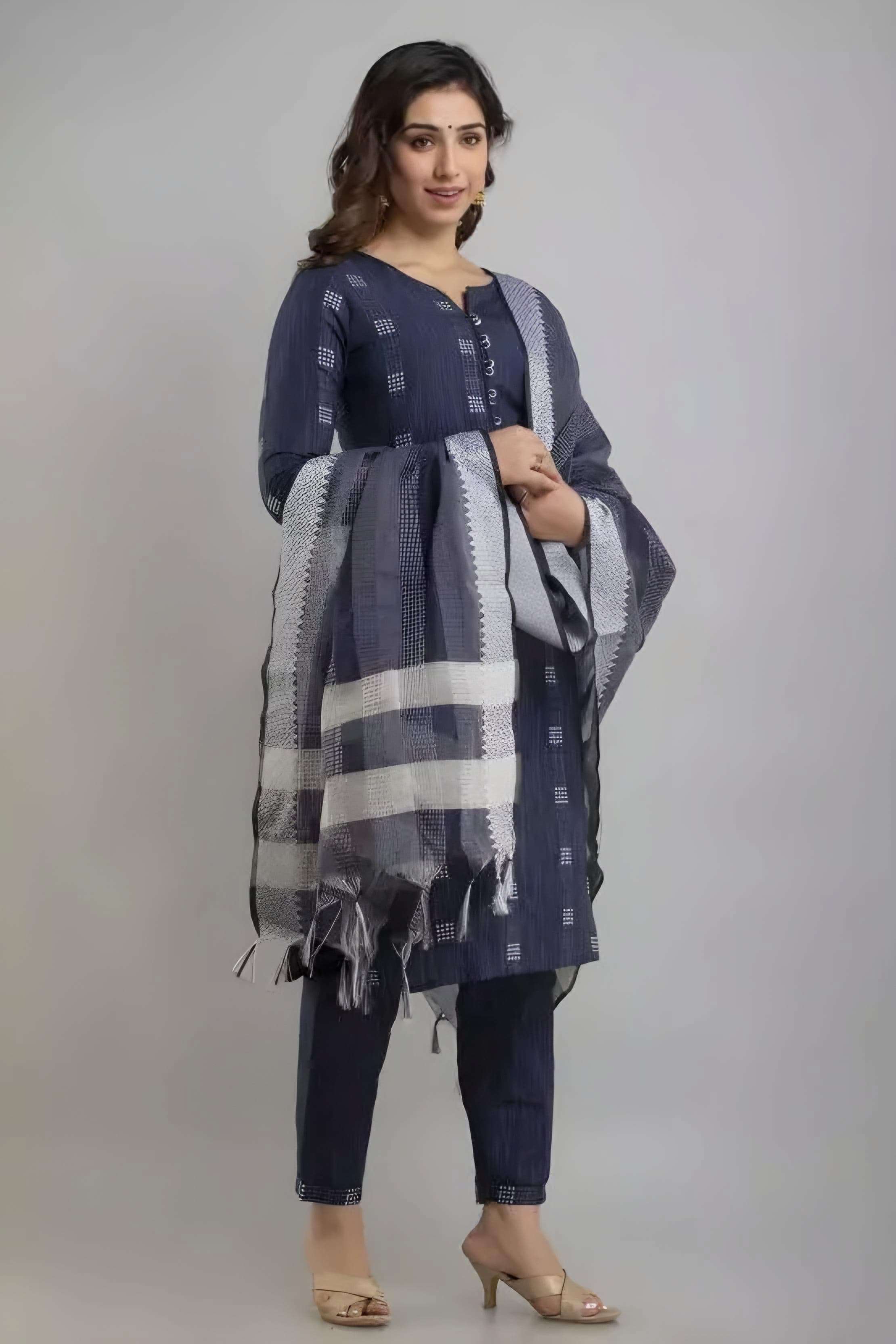 The Kurti and Pant Set with Dupatta is a beautifully.