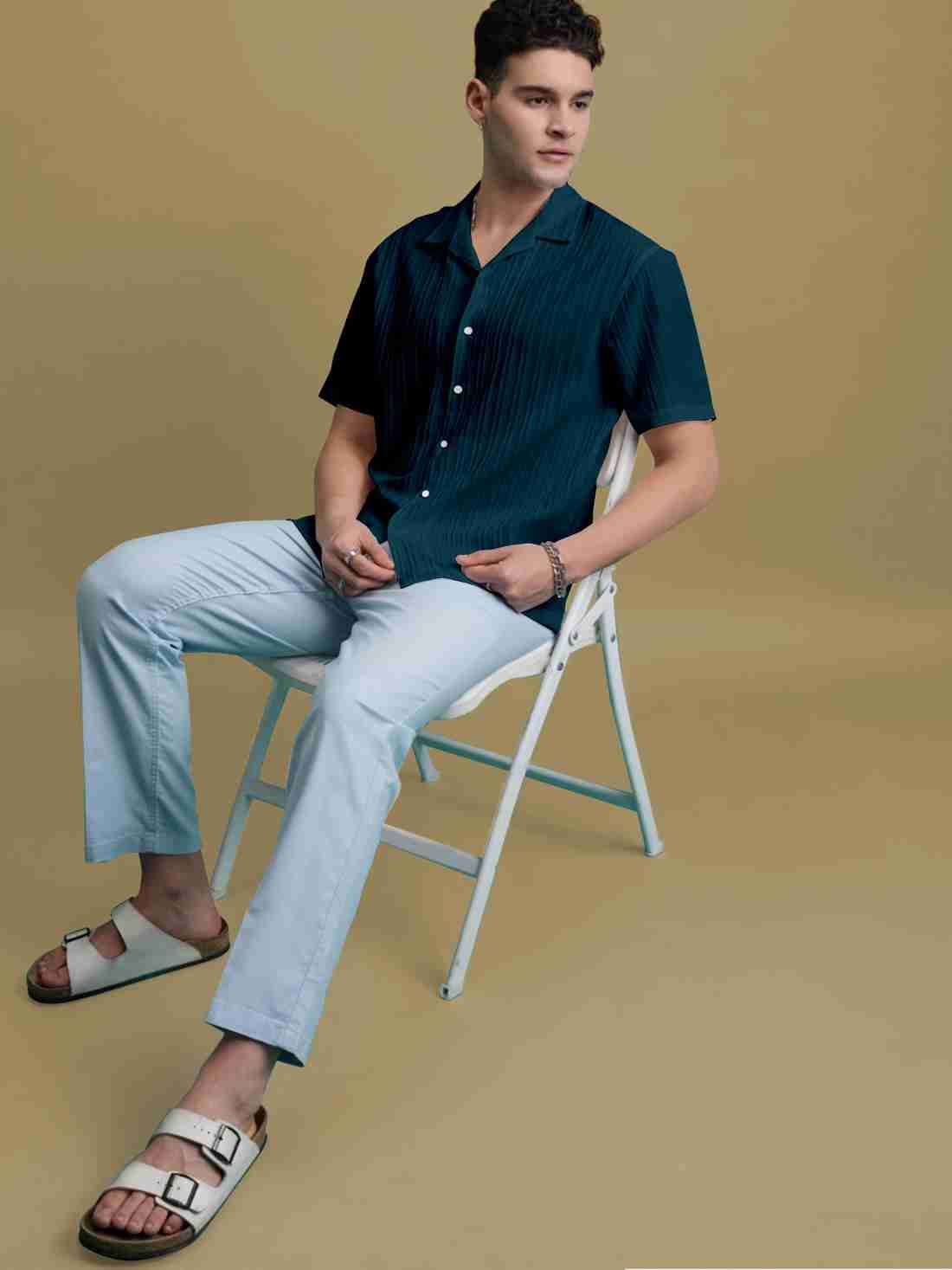 STONEBERG Men Regular Fit Solid Spread Collar Casual Shirt